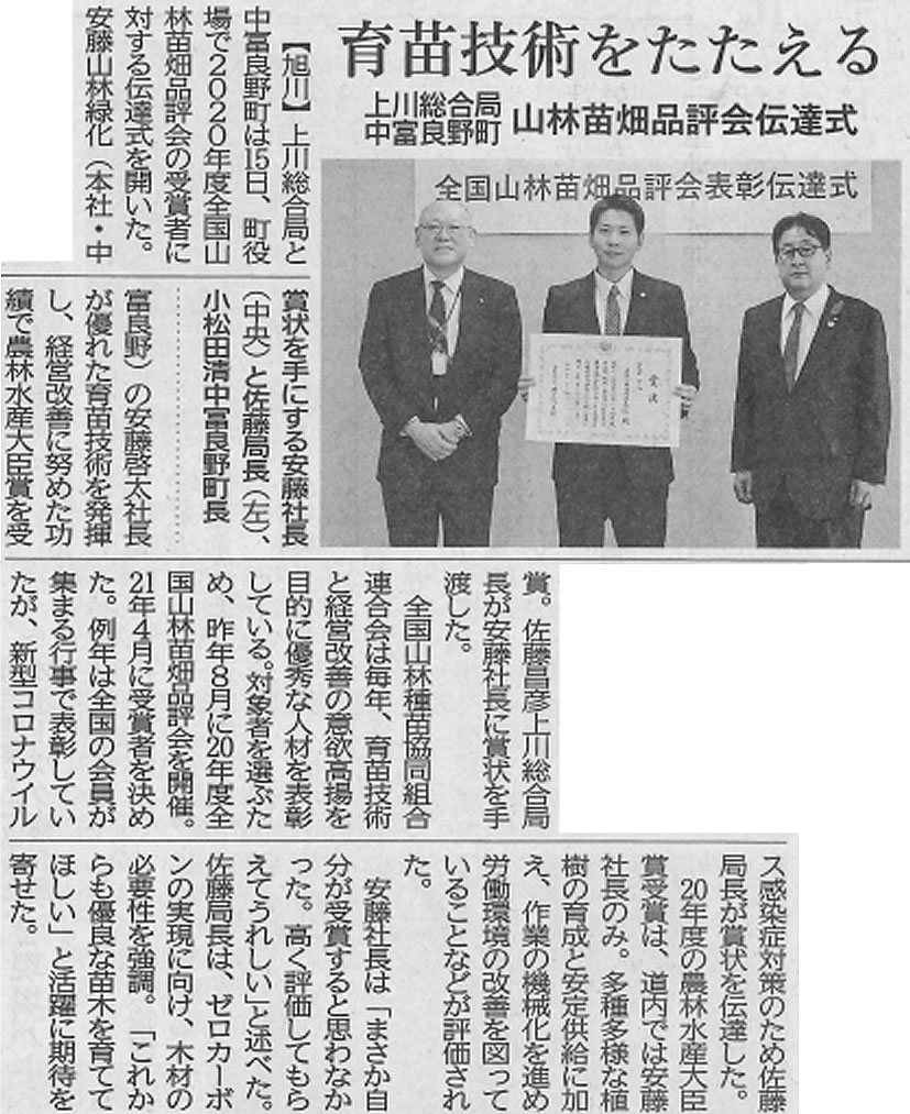 当社は先代が第一次世界大戦後の北海道森林を復興させたいという思いから、1918年に創業し、現在4代目となっています。